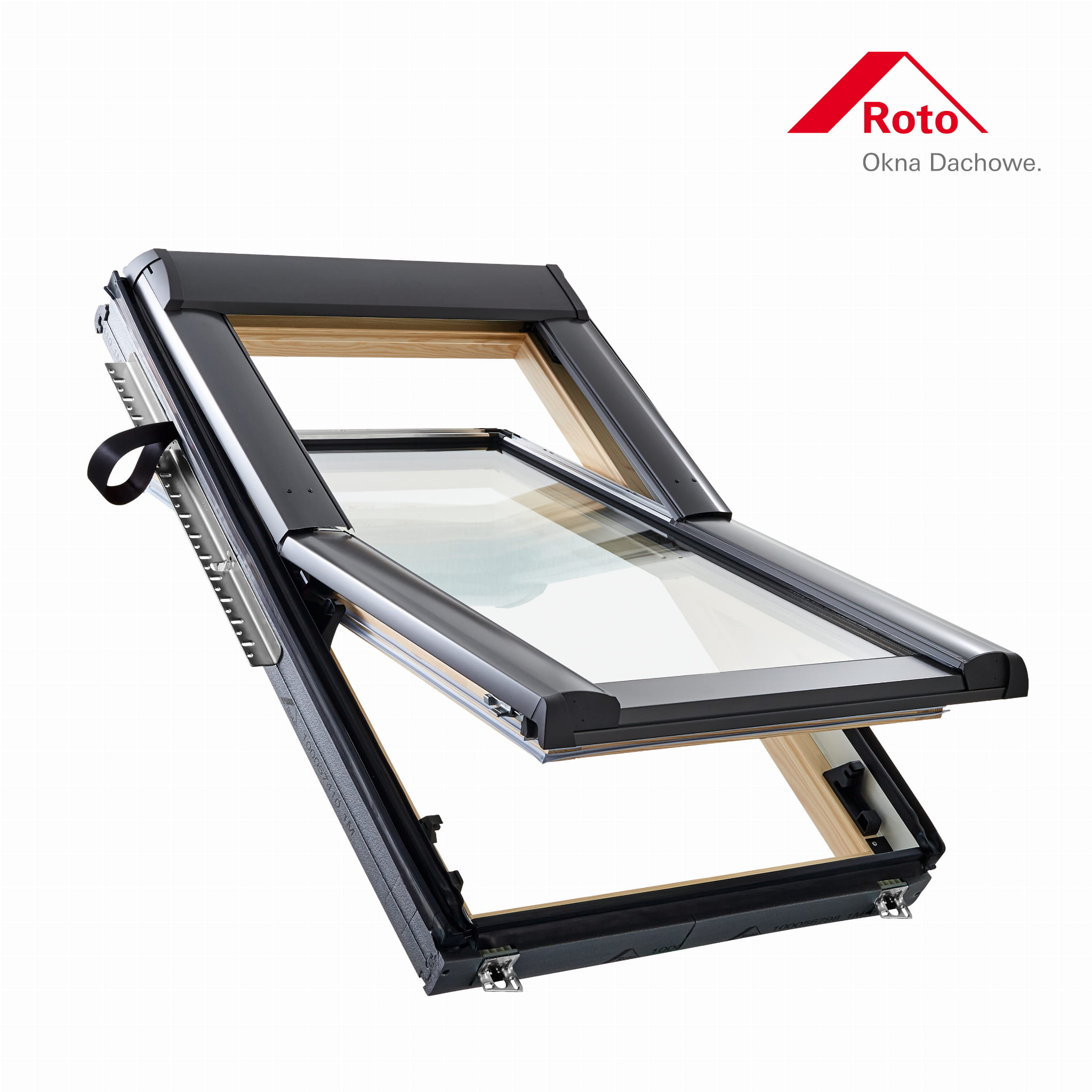 Drewniane okno dachowe obrotowe Designo R6 Comfort z pakietem 2 -szybowym, bez nawiewnika, otwieranie dolne, współczynnik Uw = 1,1