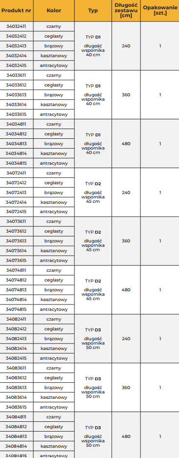 480 cm- drabinka 4 szt., wspornik 8 szt., łącznik drabinki 6 szt.