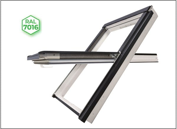 Ponadto okna posiadają nowoczesny kształt oblachowania i nowoczesny kolor - antracyt RAL 7016 w standardzie.