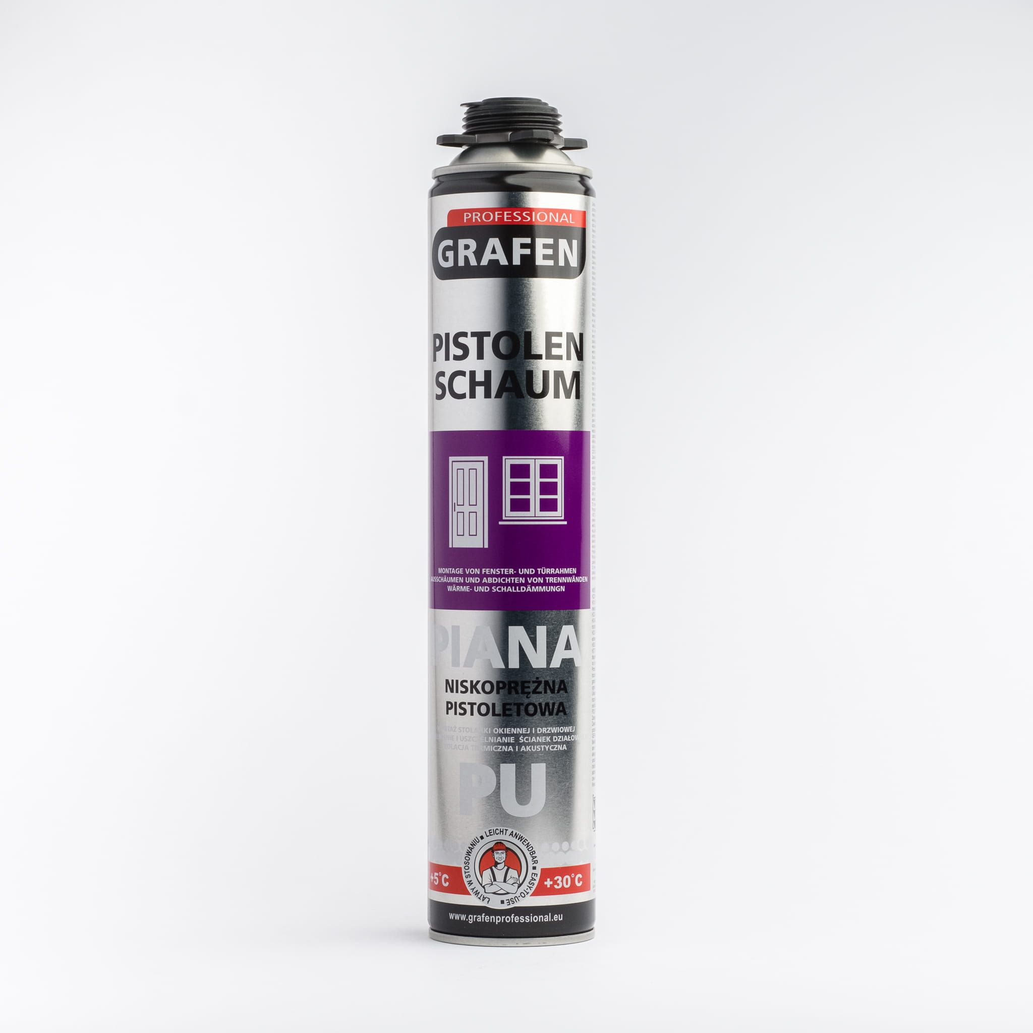 Grafen Professional Piana pistoletowa niskoprężna, utwardza się pod wpływem wilgoci, stosowana jako materiał wypełniający i izolujący.