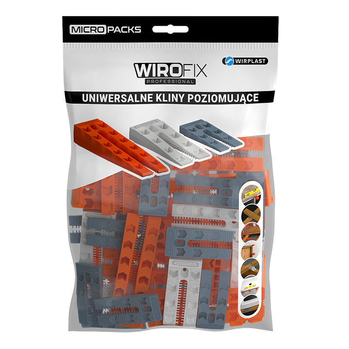 Uniwersalny klin poziomujący 4 x 10x38x77mm 4 x 15x43x88mm 4 x 25x43x140mm MICRO PACK 12 szt./opak