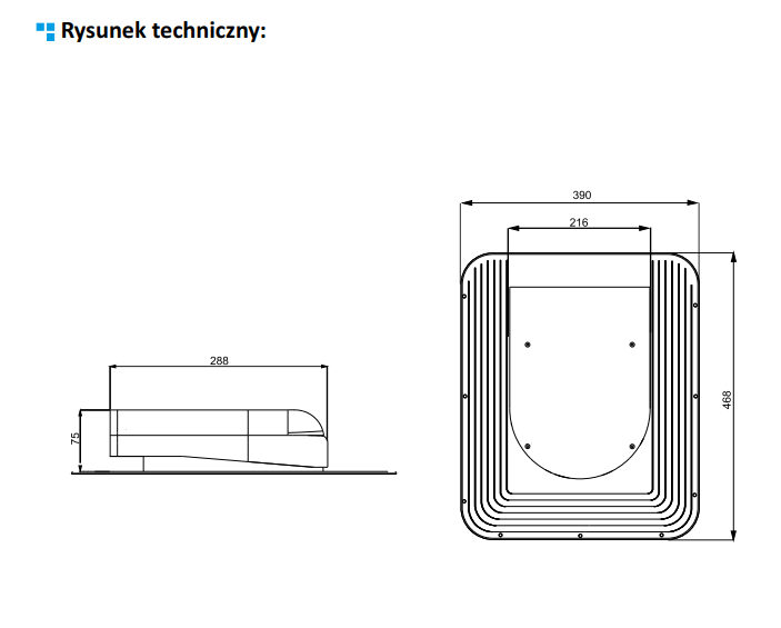Dane techniczne wywietrznika połaciowego P17