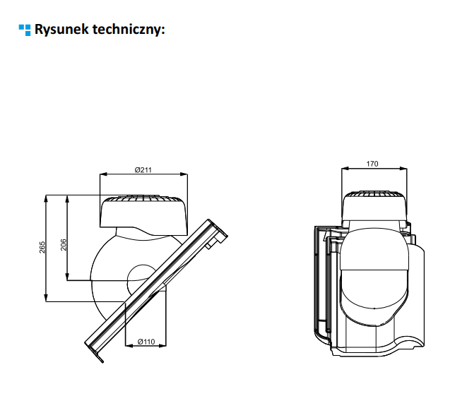 ● średnica: Ø110 ● materiał: PP stabilizowany na promienie UV, EPDM ● waga netto 2 kg ● waga brutto 2,65 kg ● rodzaj pokrycia dachówka ceramiczna ● rodzaj kominka wywietrznik kanalizacyjny ● kąt regulowany 5- 45 ● wbudowana poziomica WASSERWAAGE